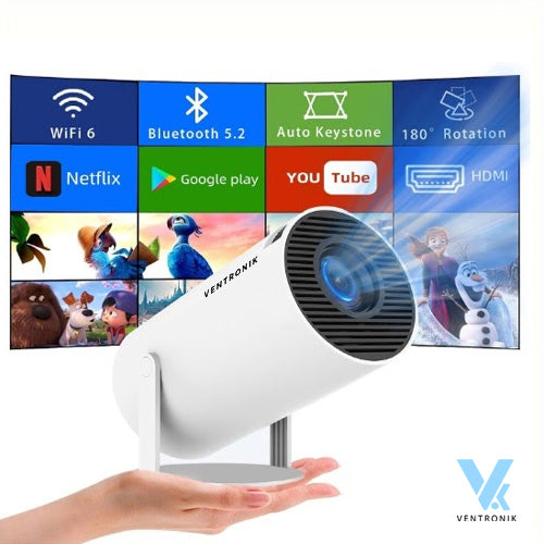 Un proyector sofisticado capaz de proyectar películas en calidad HD en cualquier pared o techo gracias al eje de rotación de 180º